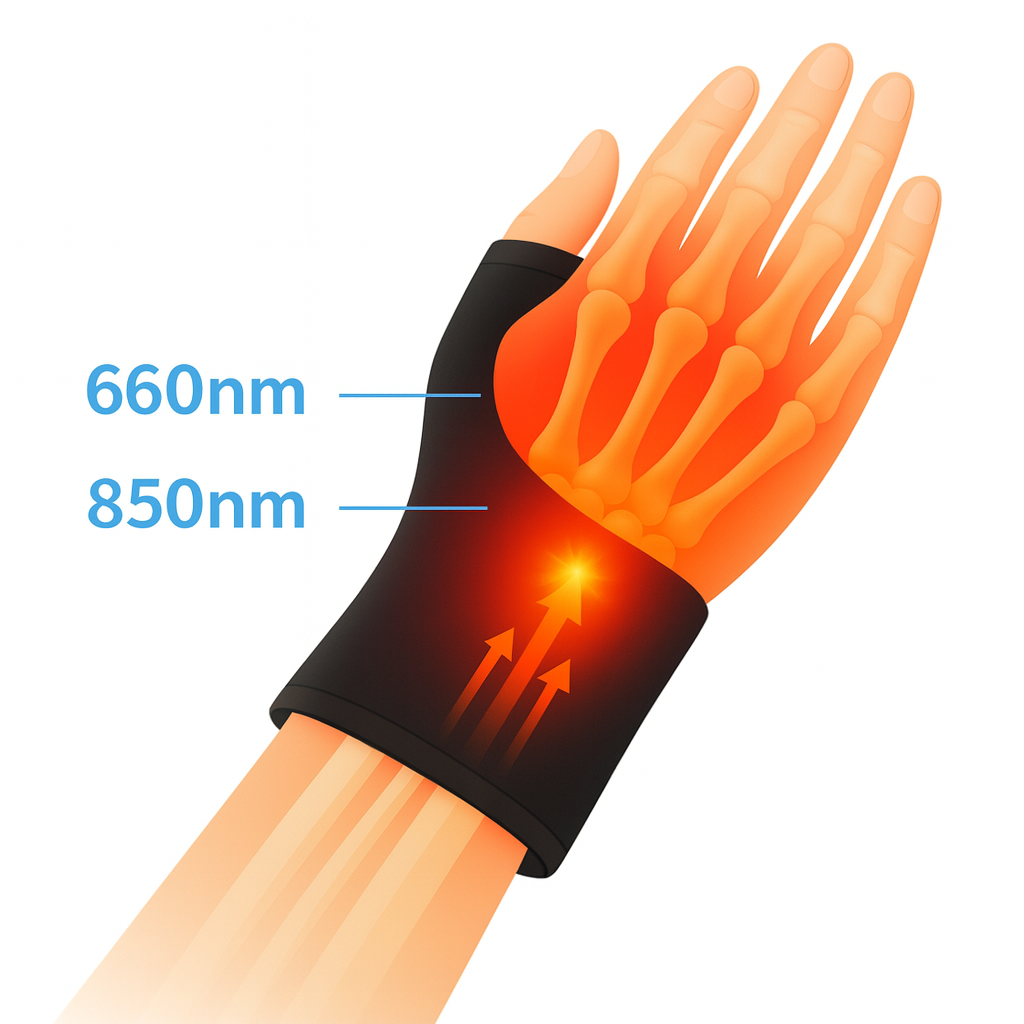 The light activates your cells to repair damage, improves circulation, and tells your body to calm down inflammation. Over time, this helps relieve pressure on the median nerve — the root cause of carpal tunnel.